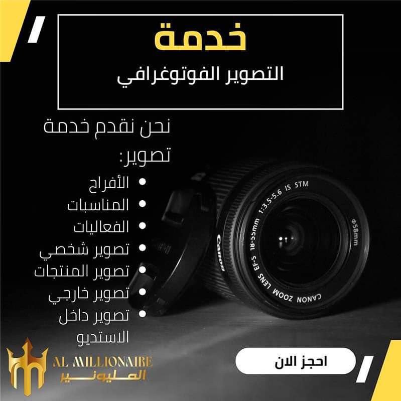 Photography studio services are now available. A specialized technical team is sent with the latest cameras and lighting equipment, filming Instagram clips and, filming promotional videos, filming products, filming special occasions, birthdays and weddings, private photography sessions, and newborn photography. At reasonable prices, please. Contact to book